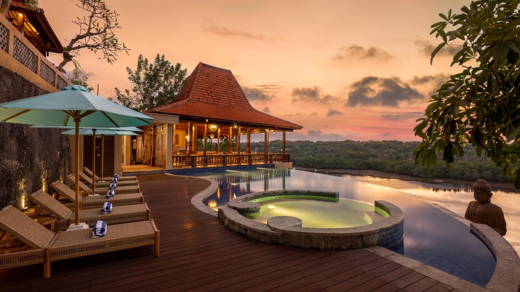 Overlooking the turquoise sea, the resort’s main infinity pool offers a tranquil space to swim, soak, and relax. Surrounded by natural stone and tropical landscaping, the pool creates a seamless visual blend with the ocean beyond — perfect for sunrise swims, golden-hour lounging, or poolside dining from Aura Restaurant.